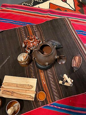 Raquel Cayap Tapuy von Kallari Futuro vermittelt uns Einblicke in den Anbau von Kakao und die Produktion von Schokolade bei der Kooperative Kallari im Amozonasgebiet von Equador. Pamela Gomez führt uns ein in ein uraltes Ritual. Es hat seinen Ursprung bei den indigenen Völkern Mittel- und Südamerikas, insbesondere den Maya, Inka und Azteken, hat. Kakao galt dort als heilige Pflanze und wurde genutzt, um eine tiefere Verbindung zu sich selbst, zur Natur und zur Gemeinschaft herzustellen. In unseren Zeremonien vereinen wir dieses alte Wissen mit unserer persönlichen Erfahrung. Wir nutzen hochwertigen, reinen „Kakao Nacional“ aus Ecuador – die gleiche Kakaosorte, die seit Jahrhunderten in spirituellen Zeremonien verwendet wird. Seine bioaktiven Verbindungen fördern Klarheit, Herzöffnung und eine tiefe innere Ruhe.